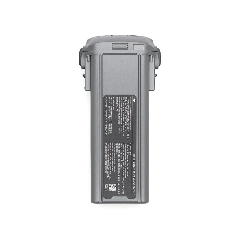 Bateria de voo inteligente com alta densidade de energia que reduz o peso total e estende o tempo máximo de voo. Possui um sistema de gerenciamento que é possível monitorar em tempo real o nível de bateria, com proteção contra sobrecarga e descarga excessiva.