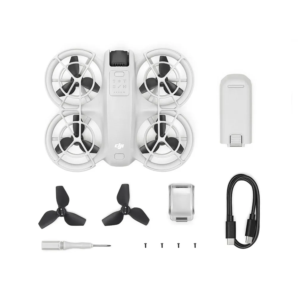 O DJI Neo Standard vem com a aeronave, uma Bateria de Voo Inteligente, protetores de hélices e muito mais!